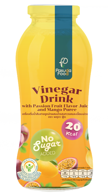 เครื่องดื่มน้ำส้มสายชูหมักผสมน้ำเสาวรส และเนื้อมะม่วงบด